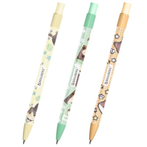 Карандаш механический цанговый 2 мм, с принтом кросс-серия МИЛЫЕ КОТЫ, BRAUBERG, HB, встроенная точилка, корпус ассорти, 182108