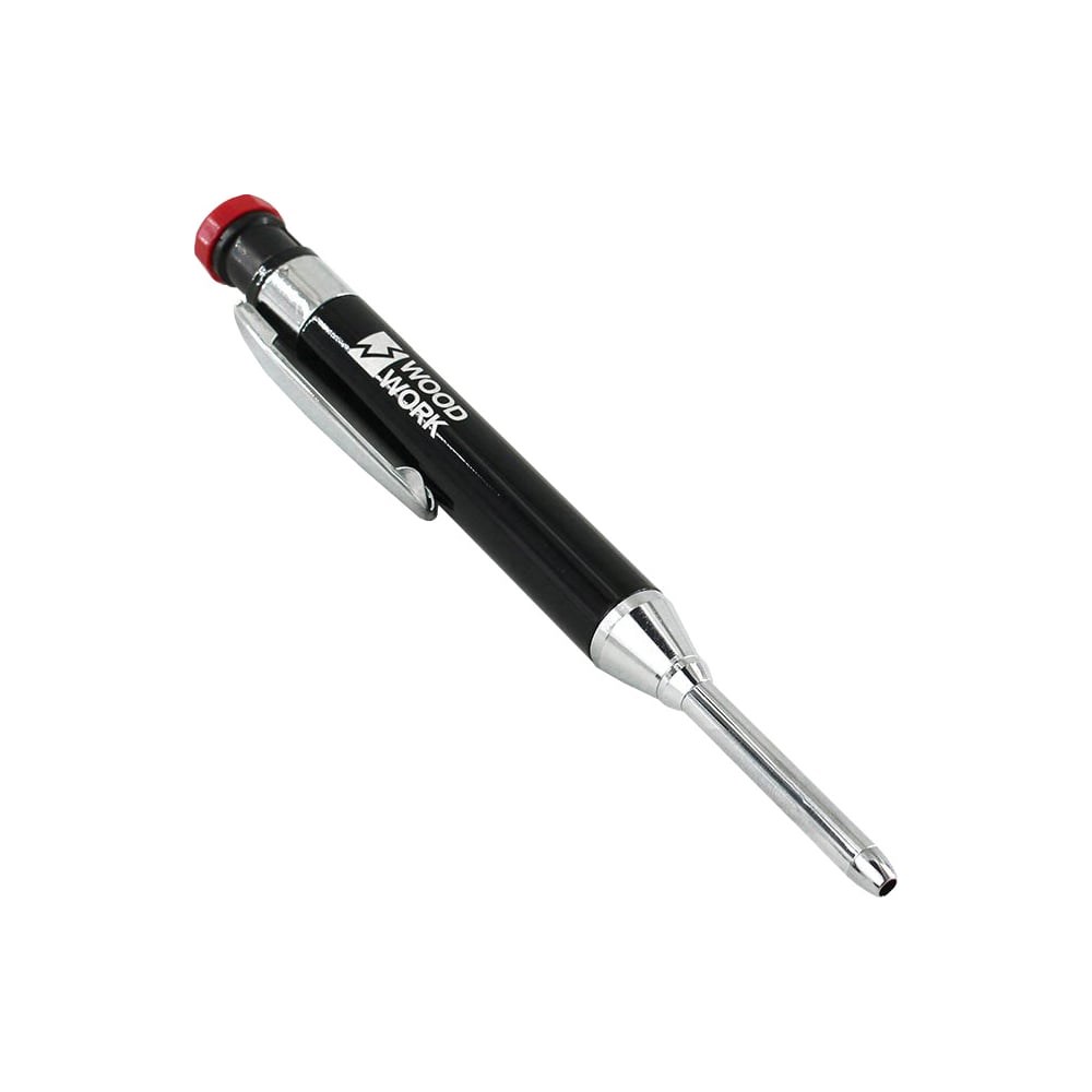 Механический карандаш WOODWORK с грифелем d2,8 мм, металлический корпус, с набором грифелей CPL-003 подходит для плотников, столяров, инженеров, архитекторов, чертежников и многих других профессий. Карандаш подходит и для гладких и для грубых поверхностей, таких как дерево, плитка, кирпич, благодаря идеальному составу грифеля. Прочный наконечник карандаша надежно защищает грифель от поломок. Инструмент имеет специальный дизайн, которых позволяет осуществлять разметочные работы в труднодоступных местах глубиной до 45 мм. Модель выполнена из качественной твердой нержавеющей стали, благодаря чему отличается надежностью и долговечностью. Металлический зажим служит для удобной переноски. Встроенный в корпус карандаша механизм точилки грифелей облегчает использование.