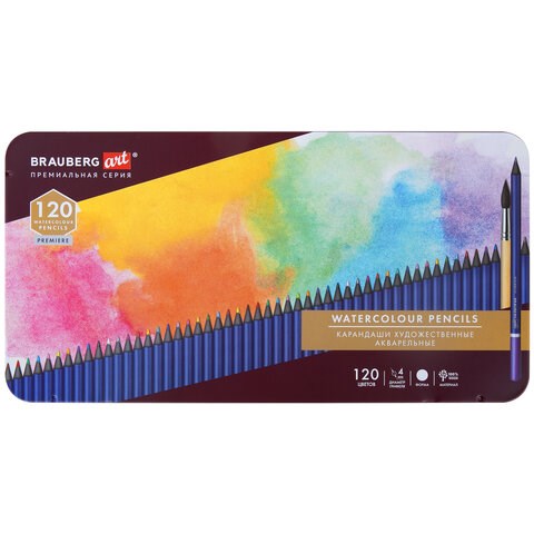 Карандаши художественные цветные акварельные, 120 цветов, 4 мм, металлический кейс, BRAUBERG ART PREMIERE, 181926