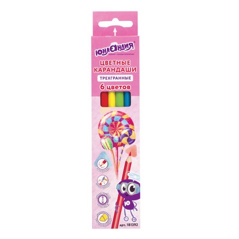 Карандаши цветные ЮНЛАНДИЯ "СЛАДКИЕ ИСТОРИИ", 6 цветов, трехгранные, грифель 3 мм, натуральное дерево, 181392