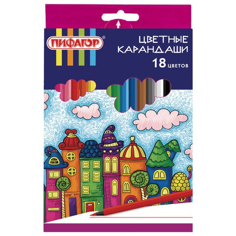 Карандаши цветные ПИФАГОР "СКАЗОЧНЫЙ ГОРОД", 18 цветов, шестигранные, 181584