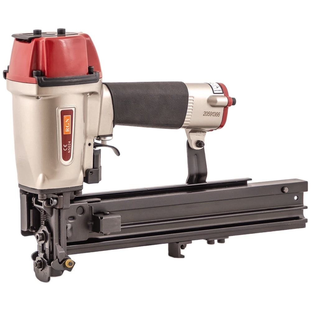 Скобозабивной каркасный инструмент RGN N5024R используется при изготовлении мебельных каркасов, деревянной тары, других конструкций из дерева, а также при проведении строительных и отделочных работ. Применяемая длина скобы 16-50 мм. Имеет регулировку глубины забивания, контактный предохранитель, 2 режима работы.