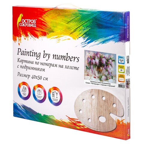 Картина по номерам 40х50 см ОСТРОВ СОКРОВИЩ "Натюрморт с сиренью и черешней" на подрамнике, акрил, кисти, 662912