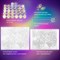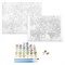 В набор входит: 1 хлопковый холст на подрамнике с контуром, 1 лист бумаги для тренировки, набор из 32 акриловых красок объемом 3 мл каждая, 3 синтетические кисти и комплект металлических креплений для подвешивания на стену.