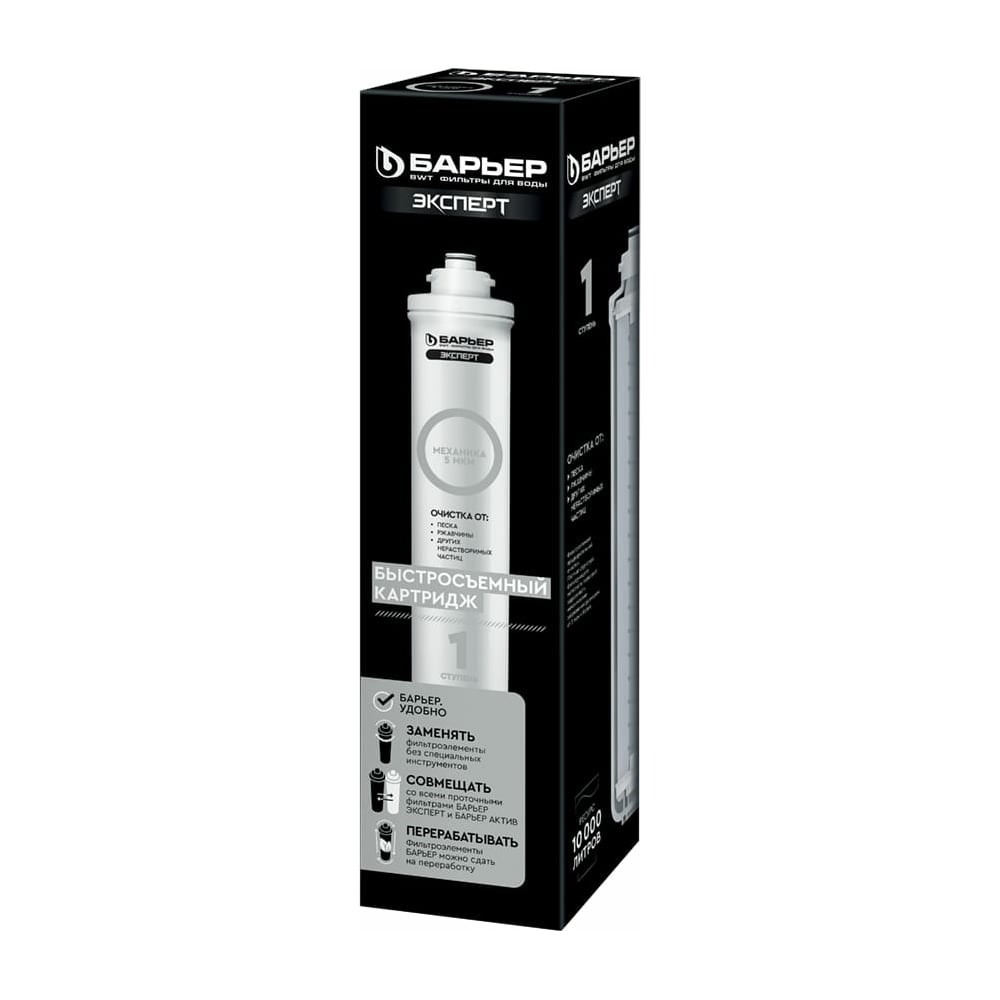 БАРЬЕР ЭКСПЕРТ Механика - картридж предварительной очистки. Удаляет механические загрязнения, песок, ржавчину и других взвеси/нерастворенных частиц. Тонкость фильтрации 5 мкм.Используется как 1-я ступень в фильтрах линейки: ЭКСПЕРТ, ЭКСПЕРТ СЛИМ.Технология ONE TOUCH - замена картриджа одним движением, без специальных инструментов.Технология Smart lock обеспечивает защиту от протечек.Совместим со всеми проточными фильтрами БАРЬЕР Эксперт, БАРЬЕР Актив, БАРЬЕР СЛИМРесурс — 10 000 л.Производительность 2 л/мин.Рабочее давление — 0,5–7,0 атм. Выберете свой фильтр с Картой Воды: https://www.vseinstrumenti.ru/promo_actions/barier-karta-vody/?utm_ban=6069405&utm_camp=2202332&utm_supercamp=209458&ues=1