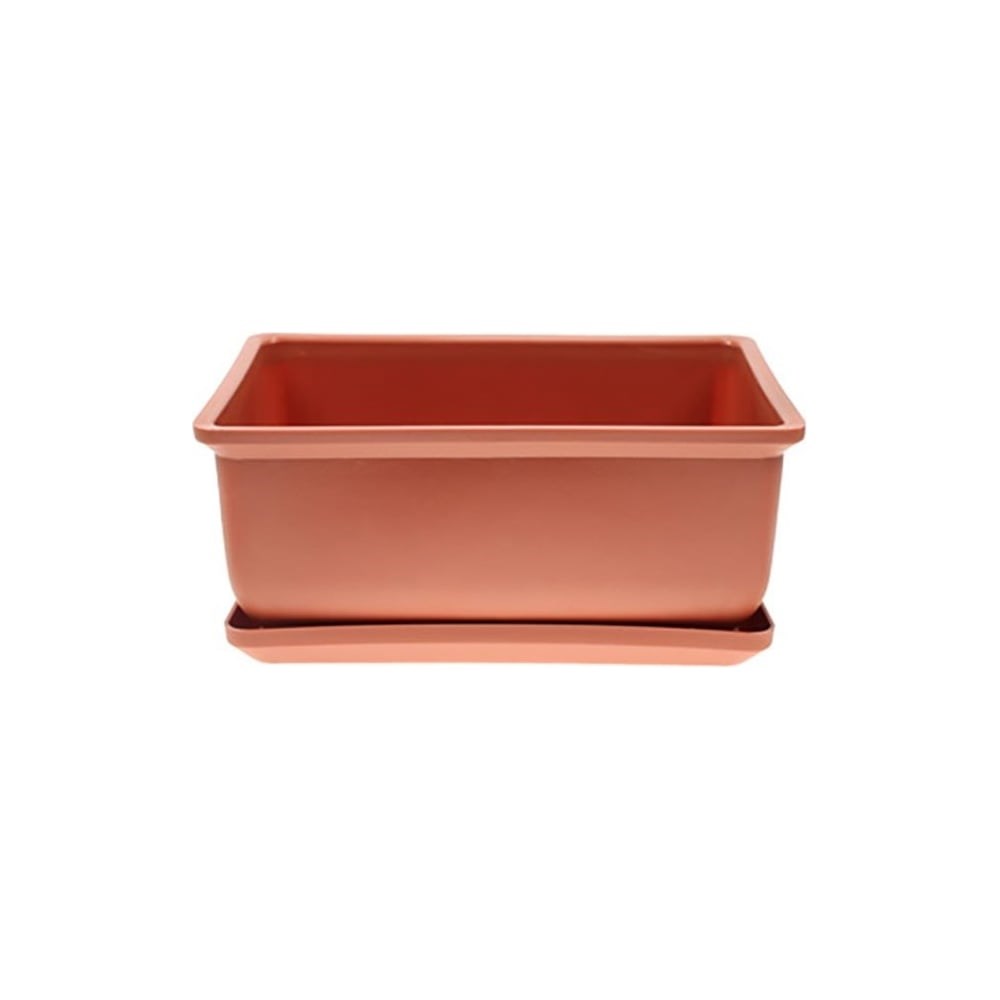 Кашпо с поддоном ФлораПласт Бонсайница 15х10х6 см, терракотовое, 0.75 л 000918 предназначено для выращивания различных декоративных культур. Изделие имеет прямоугольную форму, что позволяет разместить его на узких подоконниках и полках. Кашпо выполнено из прочного пластика, устойчивого к воздействию внешней среды, благодаря чему подойдет для размещения внутри и вне помещения.