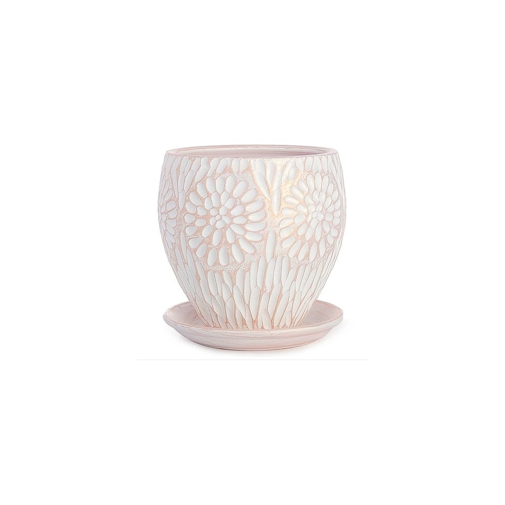 Кашпо с поддоном Сады Аурики Астра конус, керамика, бел жемч, d18см, h19.5см, 3.4л 26 223 071267