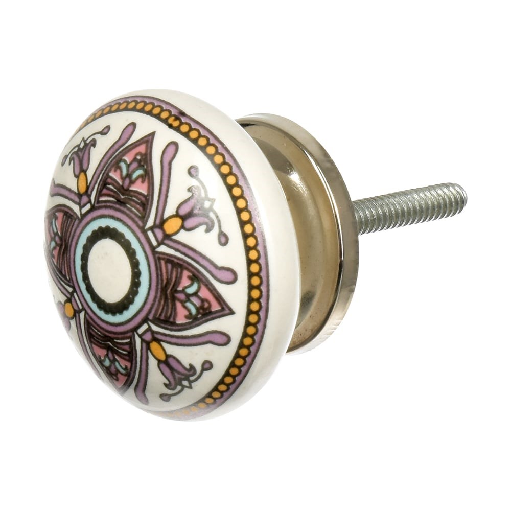 Керамическая ручка для мебели Blumen Haus Орнамент цвет белый, рисунок сиреневый 66244 предназначена для открывания мебели.Надежно крепится к фасаду, поэтому не упадет.Эстетичный дизайн изделия впишется в любой интерьер.Простой монтаж ручки экономит время и не требует специальных навыков.Цена указана за 1 шт!