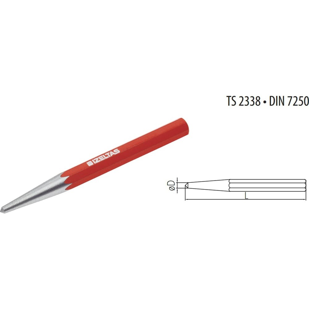 Кернер 5х120мм IZELTAS 5540245120 удобен в использовании. Инструмент необходим для выбивания углубления под центр отверстия перед сверлением дрелью или на станке. Изделие выполнено из хромованадиевой стали и окрашено порошковой краской.