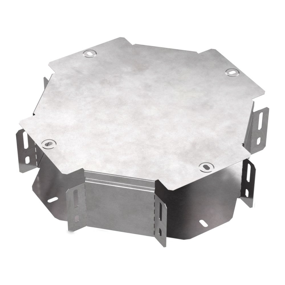 Х-образный ответвитель с крышкой Промрукав Стандарт 150х100 PR16.0461 предназначен для разветвления кабельных трасс в горизонтальном направлении, для перфорированных и глухих лотков. Аксессуары для лотков Промрукав подходят для соединения между собой лотков серии «Стандарт» в любой комбинации. Аксессуары изготавливают из оцинкованной ленты по методу Сендзимира, с толщиной цинкового покрытия от 19 до 23 мкм.