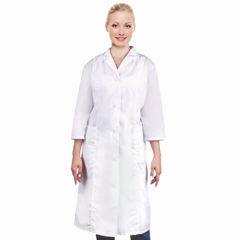 Халат медицинский женский белый, рукав 3/4, тиси, размер 52-54, рост 158-164, плотность ткани 120 г/м2, 610748