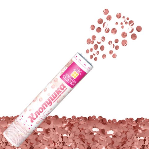 Хлопушка пневматическая 20 см "ВОЛШЕБСТВО" фольга, круги, розовое золото, ЗОЛОТАЯ СКАЗКА, 592468