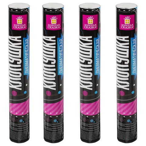 Хлопушка пневматическая 30 см "Серпантин" 3+1 шт. В ПОДАРОК, фольга разноцветная, ЗОЛОТАЯ СКАЗКА, 592084