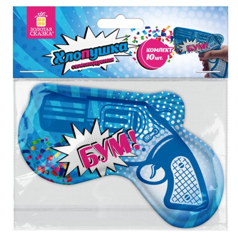 Хлопушка самонадувная КОМПЛЕКТ 10 штук "Пистолет с конфетти", фольга, бумага, ЗОЛОТАЯ СКАЗКА, 592462