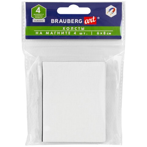 Холсты на магните прямоугольные НАБОР 4 шт., 6х8 см, 280 г/м2, 100% хлопок, BRAUBERG ART CLASSIC, 192335