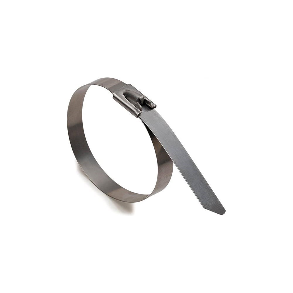 Хомут из нержавеющей стали DKC AISI 304 4,6x150 50 шт 27403 туго затягивается, устойчив к коррозии, воздействию агрессивных сред и солнечных лучей, что позволяет использовать его не только внутри помещений, но и на улице. С помощью таких хомутов можно создавать как жесткие, так и подвижные соединения. Замок на хомуте обеспечивает надежную фиксацию, а обработка краев предупреждает повреждение проводов изделиями. Стальные хомуты могут применяться при температуре от – 80 до +538 градусов Цельсия.