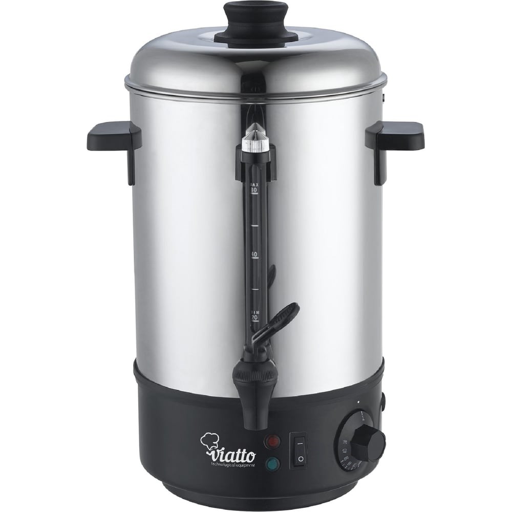 Электрокипятильник Viatto VA-WB08 157822 предназначен для нагрева и кипячения воды, а также поддержания её в горячем состоянии. Оснащён терморегулятором, закрытым ТЭНом и одинарными стенками. Есть мерное стекло, позволяющее отслеживать уровень воды. Благодаря удобным ручкам оборудование можно легко переносить. Корпус изготовлен из нержавеющей стали и пластика. Рекомендуется к применению в кафе, столовых, фаст-фуд заведениях и на других предприятиях общественного питания малого и среднего форматов.