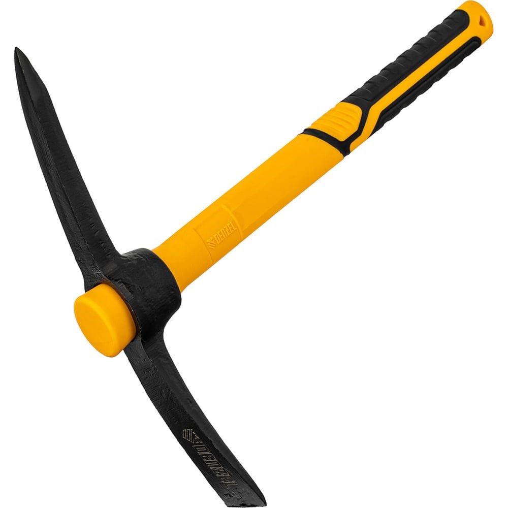 Кирка Denzel 21831 длиной 385 мм, с рабочей головой весом 700 г и фибергласовой обрезиненной рукояткой, предназначены для работы по камню, каменистому, пересохшему земляному и глиняному грунту. Могут использоваться для разрушения старой кирпичной кладки и колки льда. Рабочая часть изготовлена из стали 65Г методом ковки, режущие кромки закалены до твердости 45 HRC и заточены. Внутри пластиковой рукоятки расположен фибергласовый стержень, значительно увеличивающий ее прочность. Места хвата обрезинены и имеют противоскользящий рельеф.