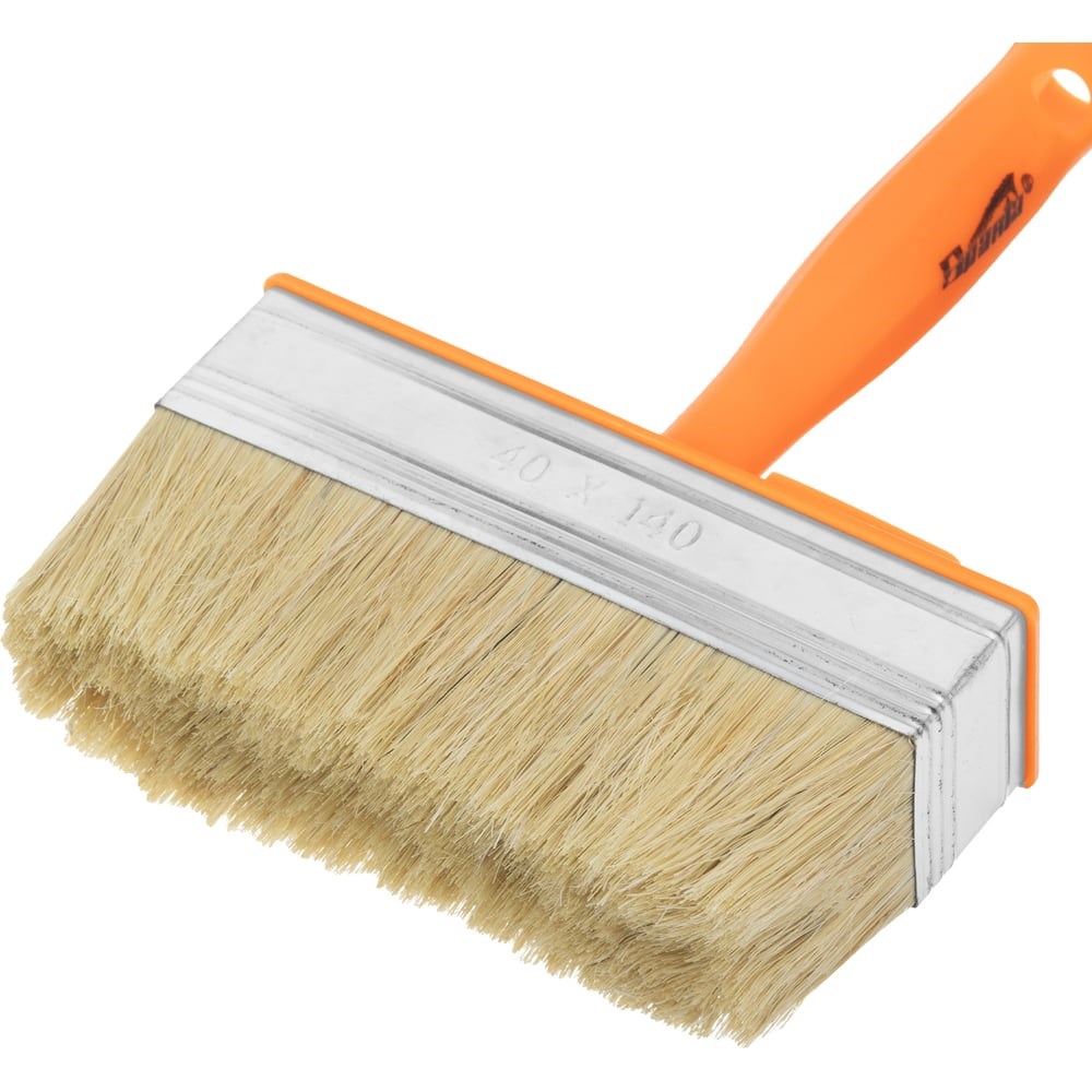 Кисть-ракля Sparta 841069 толщиной 40 мм и шириной 140 мм, с натуральной щетиной, пластмассовыми корпусом и ручкой, используется для малярных работ на участках большой площади, поэтому удобна для обработки стен, потолков и фасадов. Натуральная щетина устойчива к химическому воздействию, поэтому не деформируется и сохраняет упругость при работе с ЛКМ на водной основе, грунтовками, масляными красками и клеящими составами.ПреимуществаДолговечность — щетина обладает высокой износостойкостью, металлический бандаж защищен от ржавчины антикоррозийным покрытием.Высокое качество окрашивания — кисть равномерно распределяет краску по поверхности.Низкий расход ЛКМ — натуральная щетина двойной выварки с расщепленными щетинками способна удерживать и отдавать большой объем краски.Эргономичность — утолщенная рукоятка обеспечивает удобный захват и позволяет долго работать без усталости.Продуманная конструкция — во время перерыва в работе кисть можно закрепить на краю емкости с краской.Удобное хранение — отверстие в рукоятке позволяет подвешивать кисть на крючок или гвоздь.