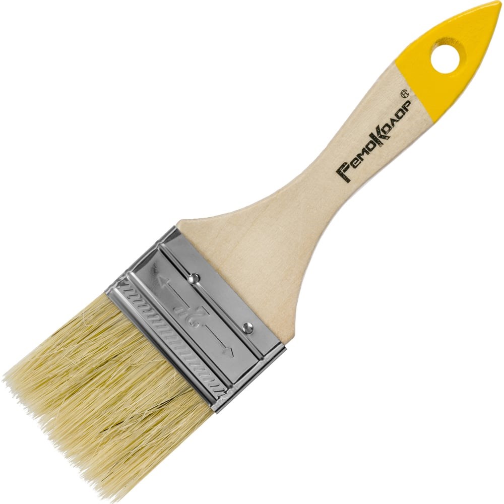 Кисть Любитель 2" РемоКолор 01-1-420 используется для нанесения красок на масляной основе, лаков, олифы и древесных масел. Кисть из натуральной щетины имеет свойство набирать и удерживать краску. Ручка изготовлена из дерева и предотвращает выскальзывания во время работы. Бандаж из металла крепко закрепляет рабочую части и гарантирует долгую службу.