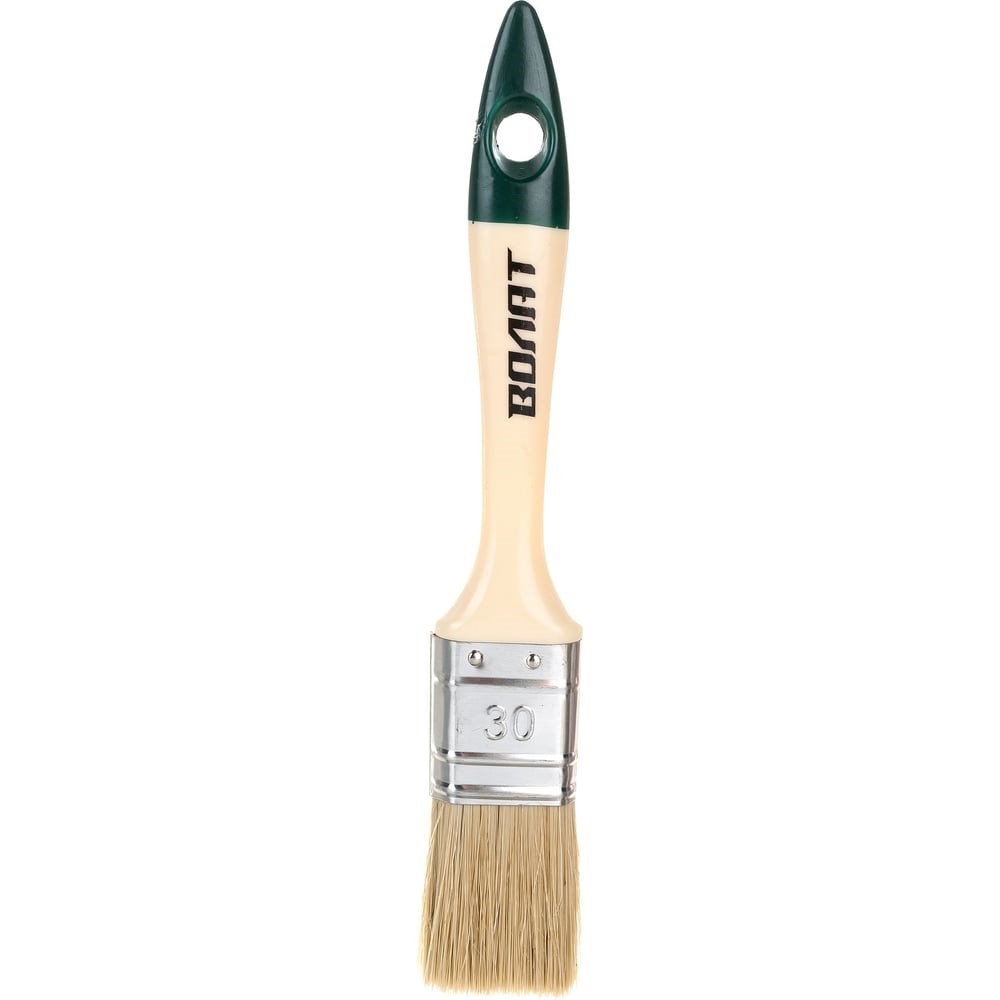 Плоская кисть ВОЛАТ 30 мм 10701-30 используется для выполнения различных внутренних и наружных малярных работ на плоских поверхностях. Подходит для работы со всеми типами лакокрасочных материалов (ЛКМ), применяется преимущественно при окрашивании лакокрасочными материалами на масляной основе, густыми лаками, олифой и эмалями. Натуральная светлая щетина устойчива к сильным растворителям, обладает хорошей краскоотдачей и позволяет равномерно распределить краску по окрашиваемой поверхности. Эргономичная пластиковая рукоять обеспечивает комфортную эксплуатацию.