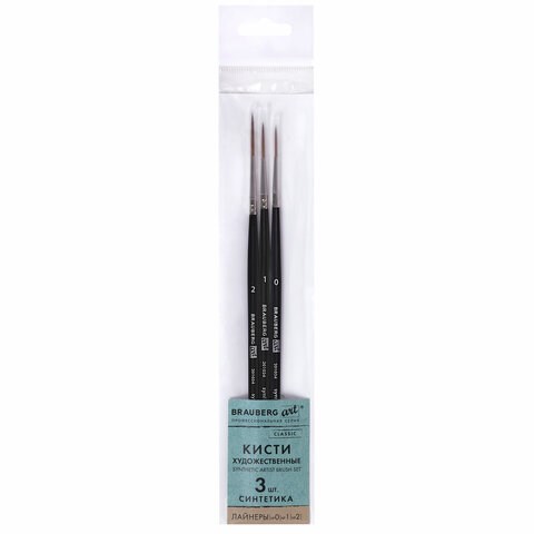 Кисти художественные набор 3 шт., синтетика (лайнеры № 0, 1, 2) BRAUBERG ART CLASSIC, 201034