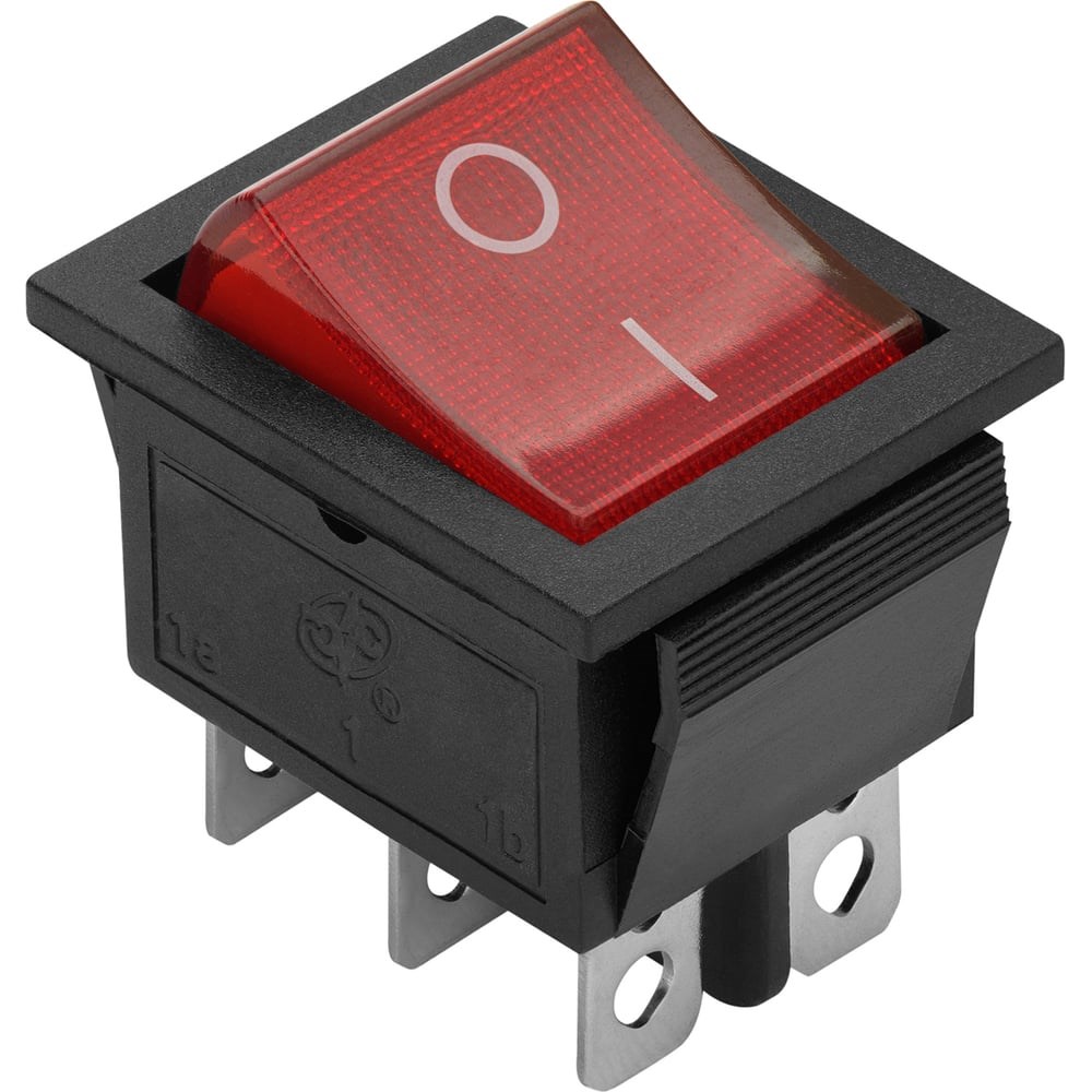 Выключатель клавишный красный с подсветкой 6 контактов, 250В, 16А, ВКЛ-ВКЛ (тип RWB-506, SC-767) , duwi Выключатель клавишный ON-OFF красный с подсветкой предназначен для коммутации электрических цепей переменного тока напряжением до 250В. Клавишные выключатели применяются в качестве комплектующих изделий различного электрооборудования (в сетевых фильтрах и удлинителях, аудио-оборудовании, блоках питания, электроустановках на различных производствах, автомобилях, и многих других местах).Такой клавишный переключатель имеет два положения. Принцип действия основан на перемещении клавиши в одну из позиций. Для переключения в нужное положение требуется приложить некоторые усилия на клавишу. Номинальный ток (А): 16Номинальное напряжение (В): 250Тип переключения: ON-OFFКоличество контактных групп: 2Количество контактов в контактной группе: 3Цвет индикатора положений: красныйФиксация положений: даПредельное напряжение: 1500VАС не более 1 минутыКонтактное сопротивление: не более 50 мОмМеханический ресурс: 10 000 цикловРабочая температура (⁰С): от -25 до +70