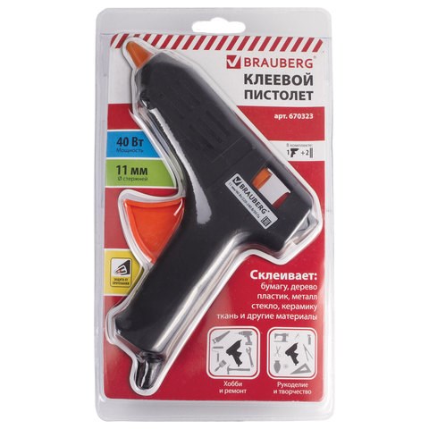 Клеевой пистолет, 40 Вт, для стержня 11 мм, BRAUBERG, в блистере, 670323