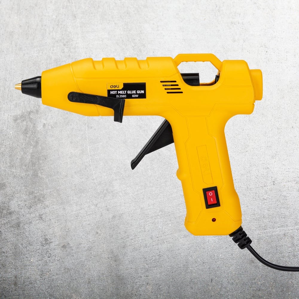 Клеевой пистолет используется для надежного склеивания различных материалов. Он имеет широкую сферу применения и подходит как для домашнего хобби, так и для промышленных объемов работ. С помощью клеевого пистолета можно герметизировать места стыковки листов пластика, дерева, линолеума и других материалов, изготавливать предметы декора, оформлять мебель и предметы интерьера, а также выполнять другие операции. Пистолет оснащен пластиковой подставкой, позволяющей избежать соприкосновение горячего алюминиевого наконечника с поверхностями. Благодаря механической подаче клея обеспечивается маневренность для точечного или плавного нанесения непосредственно в нужном месте. Мощность пистолета составляет 60Вт, в качестве расходных материалов используются клеевые стержни диаметром 11 мм и длиной 100-200 мм. Наконечник с силиконовой накладкой.