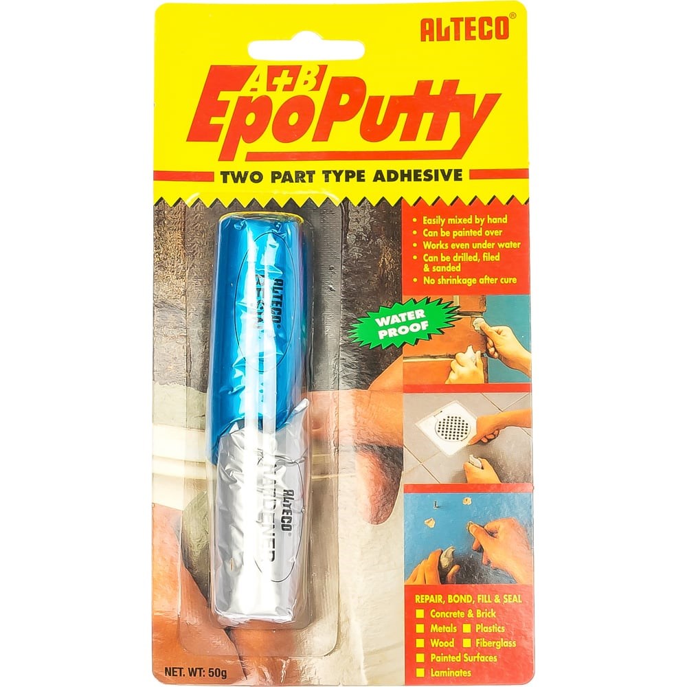 Холодная сварка ALTECO 50г 6H23 - это приспособление способное создавать суперпрочное соединение. Двухкомпонентный эпоксидный клей после застывания можно подвергать механической обработке, а также склеивать с его помощи поверхности, находящиеся под водой. Клей подойдет для ремонта и склеивания бетона, кирпича, камня, металла, пластика, дерева, стекловолокна, ламината, окрашенных поверхностей.