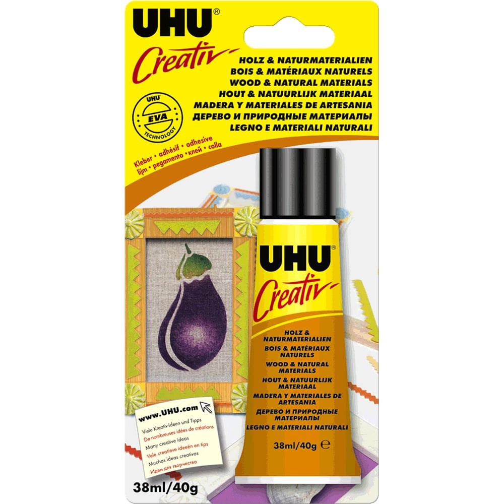 Клей серии UHU Креатив предназначен для работы с природными, натуральными материалами. Идеально подходит для дерева (в т.ч. дерева бальза), пробки, древоподобных и природных материалов (солома, льняные волокна, рафия, вата, ворс, высушенные цветы, джут, сизаль, листья, перья), бумаги, картона как между собой, так и в сочетании с другими материалами. Быстросхватывающий клей, не содержит растворителей, при высыхании прозрачный. Идеально подходит для работ в техниках скрапбукинга, квиллинга, бумажного творчества, мозаики,флористики,коллажей, аппликаций, декорирования предметов и интерьеров, создания поделок из шерсти, декора украшений, создания игрушек и многого другого. Нанесите клей на склеиваемые поверхности, давление с усилием не требуется, достаточно прижать детали друг к другу. К изделию можно прикасаться через 12 часов, обрабатывать, сверлить, шлифовать через 24 часа. Клей сохраняет все свойства при соблюдении рекомендованного температурного режима хранения от +5С до+30С.