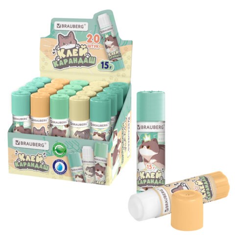 Клей-карандаш 15 г, кросс-серия "МИЛЫЕ КОТЫ", ассорти, BRAUBERG, 273228