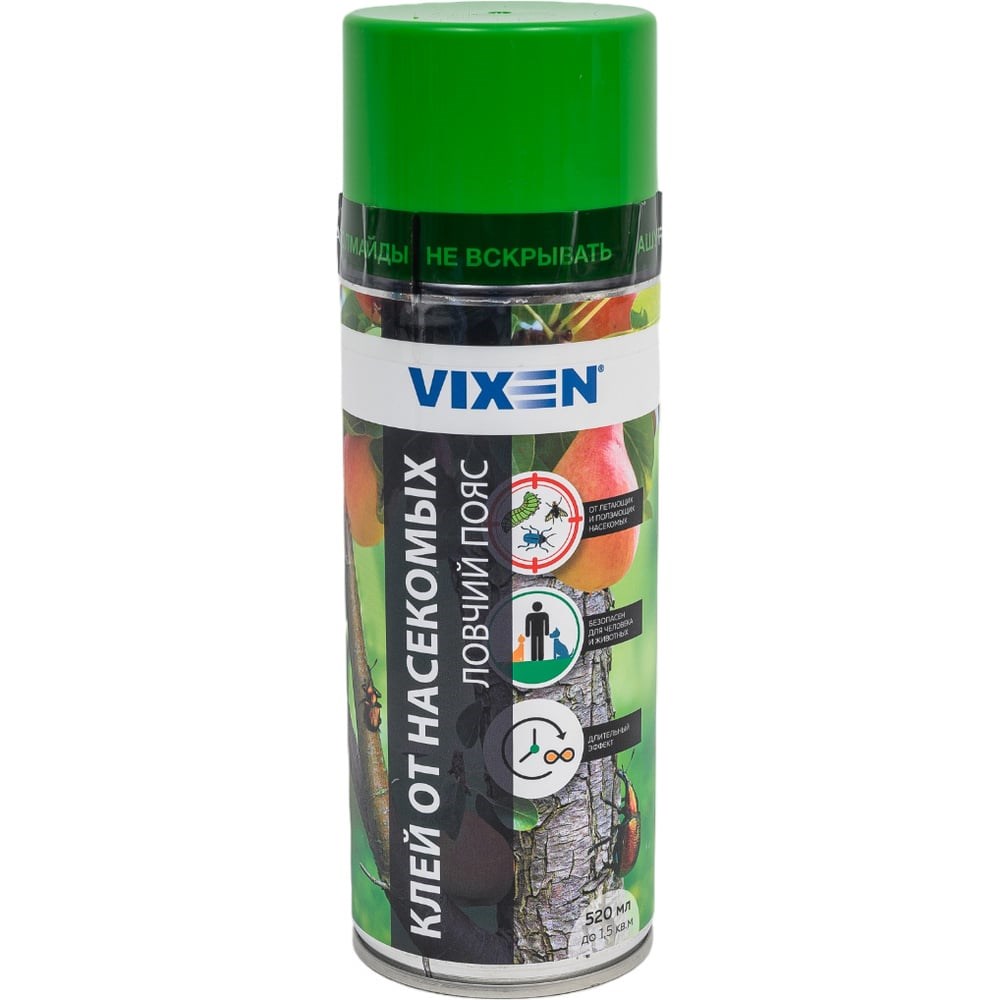 Клей от насекомых Vixen аэрозоль VX91054 предназначен для эффективной защиты деревьев в качестве ловчего пояса от всех видов ползающих насекомых. Может также использоваться в теплицах, внутри помещений для изготовления ловушек от бытовых насекомых, для наружной отделки дома (цоколя) для защиты от проникновения внутрь муравьев и других насекомых. Клей не имеет цвета и запаха, влагостоек. Удобен в применении, легко наносится равномерным слоем и не течет при обработке вертикальной поверхности. Состав не токсичен, поэтому клей может быть использован для ловушек в зонах хранения продуктов, в том числе на складах пищевой продукции. Обработанная поверхность приобретает клейкие свойства через 30 секунд после нанесения клея. Использованную «ловушку» утилизировать как бытовые отходы.