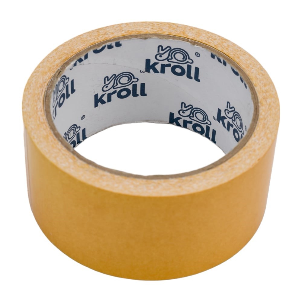 Двусторонняя клейкая лента KROLL ткань/pvc, 48 мм х 10 м 4607190400922 - двусторонняя клейкая лента на тканевой основе (PVC/ПВХ), пропитанная с двух сторон клеевым слоем (на основе синтетического каучука), наружный клеевой слой защищен силиконизированной бумажной полосой. Предназначена для склеивания шероховатых и неровных поверхностей в быту и строительстве (для монтажа, сборки, склейки, запечатывания и оформления торговых точек, выставочных конструкций, рекламных стендов, напольных покрытий).