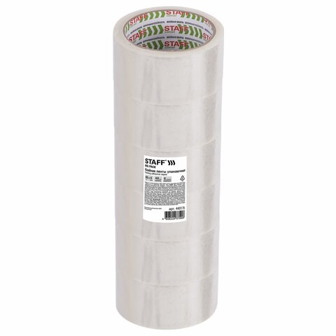 Клейкие ленты упаковочные 48 мм х 66 м, КОМПЛЕКТ 6 шт., прозрачные, 40 микрон, STAFF BIG PACK, 440179