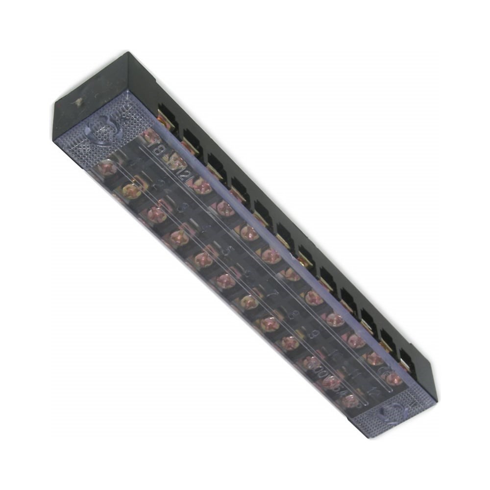 Клеммная колодка винтовая с крышкой 24 контакта, М3, 15 А, 600 В, 14 AWG, 2 мм2, корпус пластик модифицированный - предназначена для соединения проводов. Межосевое расстояние, мм 115. Диапазон рабочих температур, °C -40 …+80. Номинальное напряжение, В 600. Сечение провода, мм2 AWG14; 2. Количество контактов 24 (2х12) - M3.