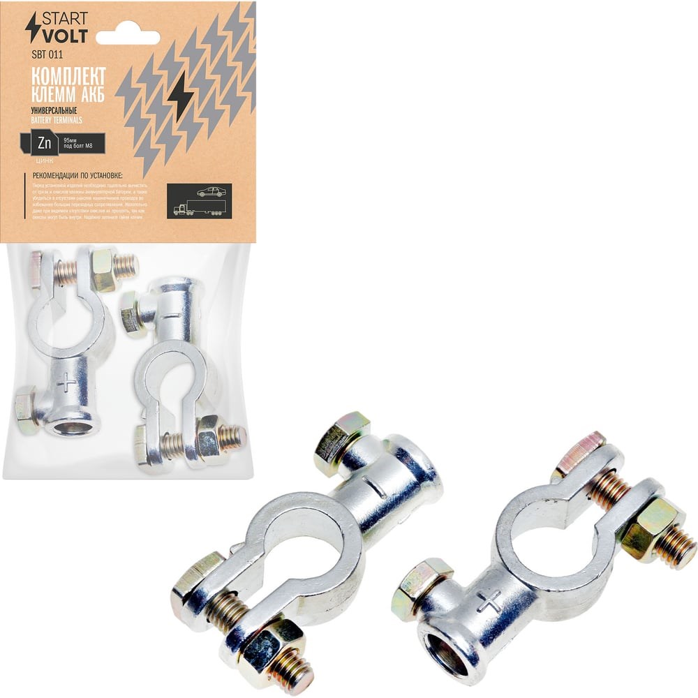 Клеммы АКБ в комплекте StartVOLT цинк 95мм.кв. под болт М8 SBT 011