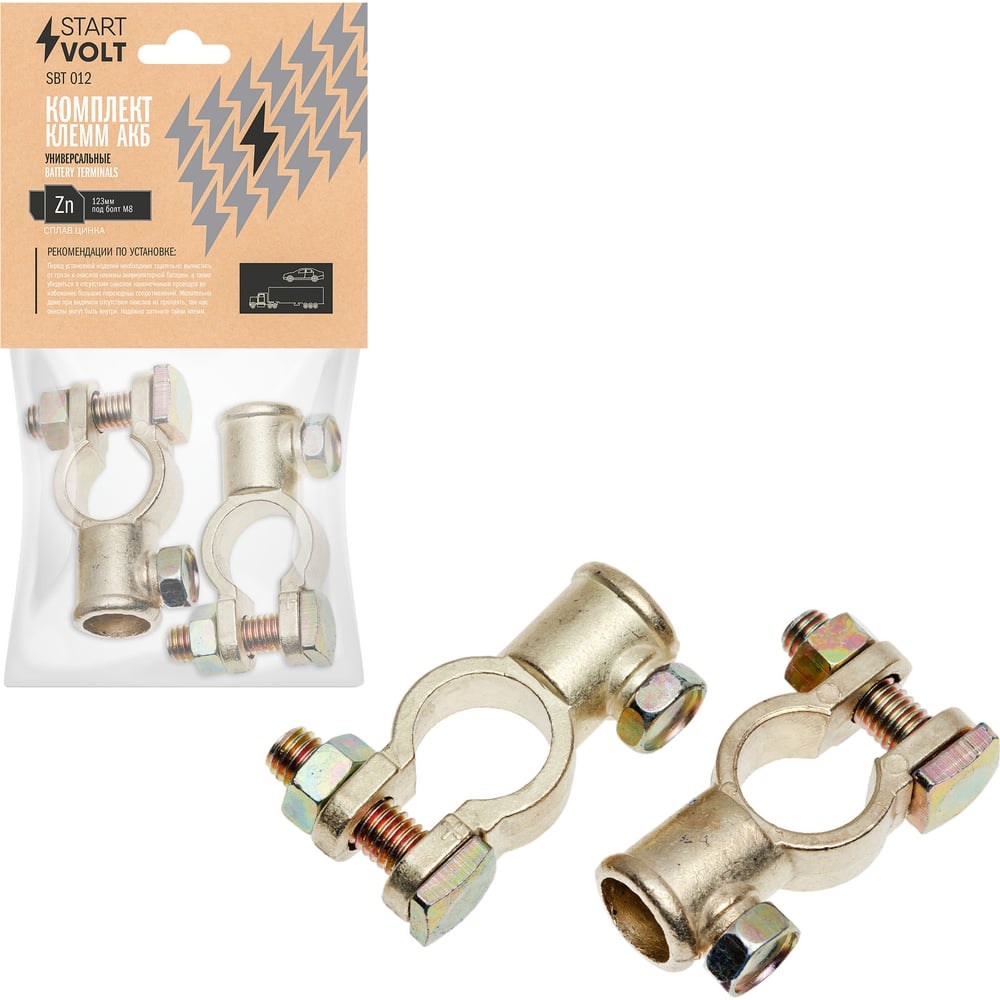Клеммы АКБ в комплекте StartVOLT сплав цинка 123мм под болт М8 SBT 012