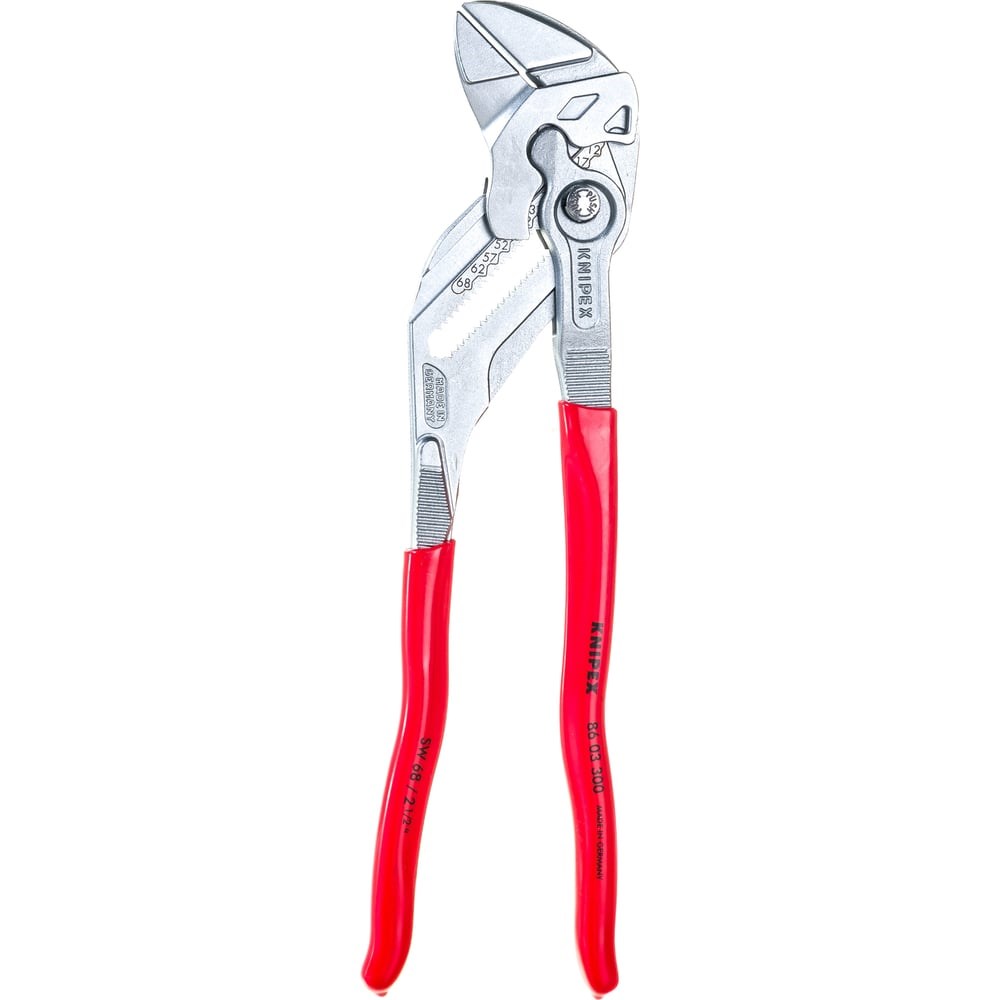 Клещевой ключ KNIPEX KN-8603300 используются для различных видов работ: опрессовка, сжатие и изгибание деталей, обламывание кафельной плитки и пр. Данный инструмент способен справиться с откручиванием деталей, имеющих шестигранный профиль - до 68 мм (2 1/2"). Возможно использование ключа в качестве небольших тисков. В конструкции предусмотрен специальный кулачковый механизм, позволяющий десятикратно увеличить приложенное усилие.