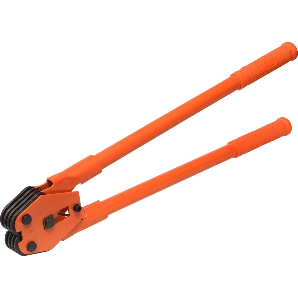 Зажимной инструмент (клещи) предназначен для закрепления пластиковой упаковочной ленты с помощью скобы после ее натяжения на грузе. Благодаря удлиненным ручкам (46 см) данная операция не представляет сложности. Резиновые накладки на концах ручек обеспечивают дополнительное удобство в работе. Благодаря яркому цвету, клещи всегда будут видны.
