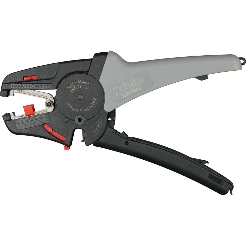 Клещи для снятия изоляции Felo 16 мм 58320040 предназначены для снятия оболочки с круглых и плоских проводов и не требуют дополнительных настроек при работе. Рукоятки и корпус инструмента изготовлены из армированного стекловолокном пластика, который увеличивает срок эксплуатации стриппера. Точный пружинный механизм обеспечивает легкий ход рукояток при работе. Клещи могут работать с одножильными и многожильными кабелями с сечением от 0,03 до 16 кв. мм и имеют регулировку по длине зачистки кабеля до 20 мм. Так же дополнительный механизм позволяет отрегулировать силу примыкания ножей инструмента при работе с кабелями с мягкой изоляцией. Отрезной нож находится снизу и закрывается предохранительной планкой, что исключает незапланированный контакт с кабелями при работе.