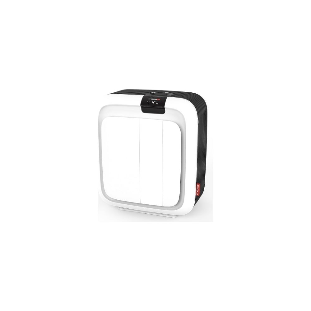 Климатический комплекс Boneco H700 очищение воздуха + увлажнение + ароматизация НС-1343953 используется в жилых и офисных помещениях площадью от 15 до 150 кв.м. Диапазон его мощности впечатляет - прибор имеет максимальные характеристики по увлажнению и способен выдавать до 1 литра воды в час - это особенно важно для тех, кто устанавливает прибор в большие пространства. Для тех же, кто пользуется прибором в спальнях или гостиных, средняя производительность увлажнения будет порядка 400-500 мл/час. Прибор может работать в разных сочетаниях функций. Если мы вынем НЕРА фильтр и включим только увлажнение - в нашем арсенале сверхмощный увлажнитель воздуха. Увлажняющий элемент не требует замены, его лишь периодически следует стирать в стиральной или посудомоечной машине, либо руками под проточной водой. Наоборот, вылив воду и установив фильтр НЕРА 13 класса, мы получим высококлассный очиститель воздуха, фильтрующий до 99,95% всех загрязняющих частиц. Такая высокая степень очистки достигается не только за счет фильтра, но и за счет встроенного лазерного сенсора, который в режиме реального времени оценивает степень загрязнений и может скорректировать работу таким образом, чтобы в считанные минуты сделать воздух кристально чистым как в швейцарских Альпах. Но наиболее предпочтительным, все же, будет комбинированный режим, когда модель одновременно эффективно и увлажняет воздух, и очищает его от загрязнений.