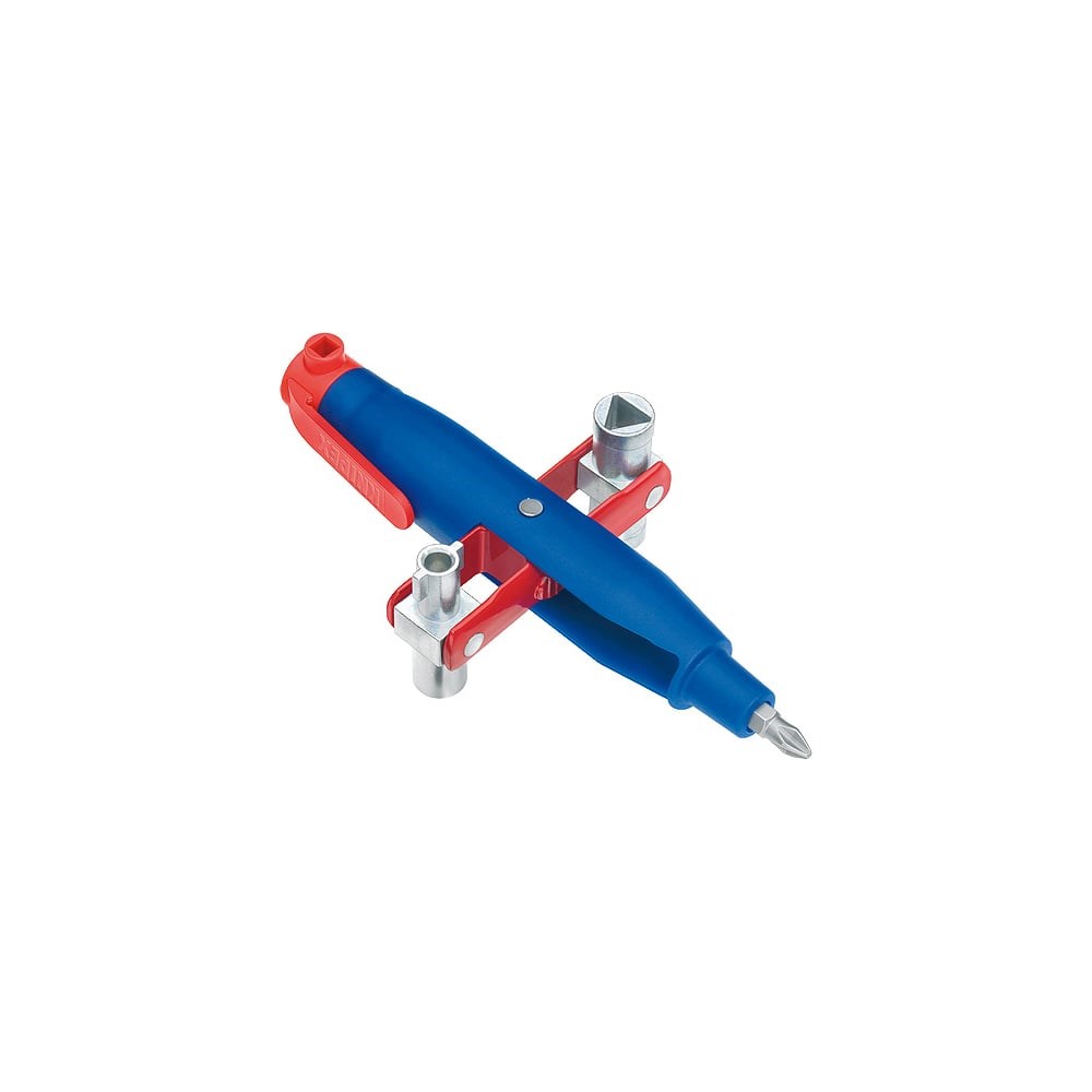 Ключ для электрошкафов с битой и переходником KNIPEX KN-001107 активно используется для наладки электрошкафов, систем газового и электроснабжения и т. д. Такой ключ является незаменимым инструментом для рабочих строительных профессий. Данная модель очень удобна в использовании, практична и долговечна. С его помощью можно легко работать с различными техническими установками, например, с запорными клапанами, кондиционерами и вентиляционными установками, а также с сетевыми пультами управления и пр.