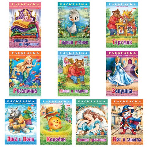 Книжка-раскраска "Любимые сказки №2", КОМПЛЕКТ 10 шт., 16 стр, 210х290 мм, HATBER