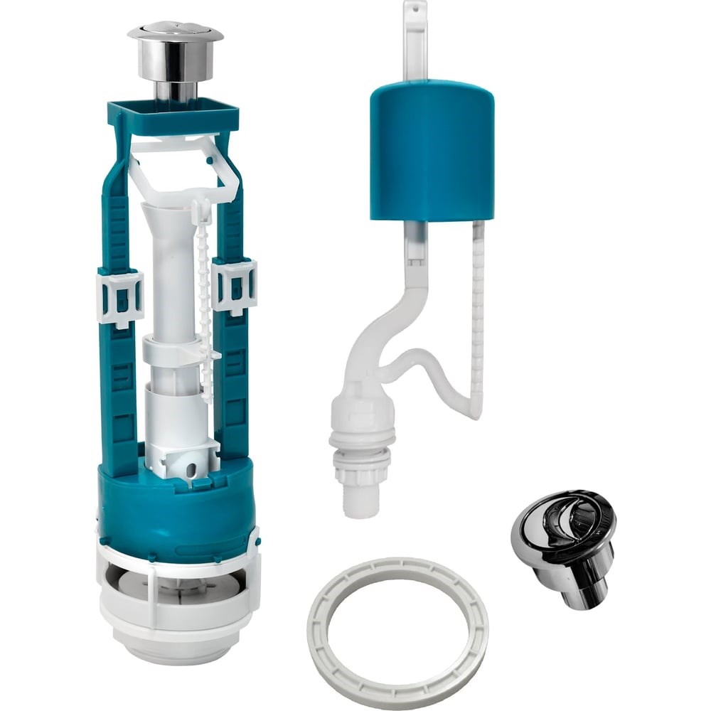 Арматура для бачка ИНКОЭР 2-режима, кнопка, нижняя подводка ИС.131037 изготовлена в соответствии с требованиями ГОСТ 21485-2016 ("Бачки смывные и арматура к ним"). Предназначена для использования в смывных бачках высотой от 350 до 430 мм и с диаметром отверстия в крышке бачка 40 мм. Для слива полного объема бачка необходимо нажать на большую кнопку смыва, для смыва 50% содержимого бачка необходимо нажать малую кнопку смыва. Величина малого смыва определяется заблаговременно настройками высоты положения поплавка блока регулировки в сливном клапане. Арматура очень компактна и удобна при монтаже в любом типе бачка с нижним отверстием для подачи воды, также отличается пониженным уровнем шума. В комплекте прилагается крепление для бачка.