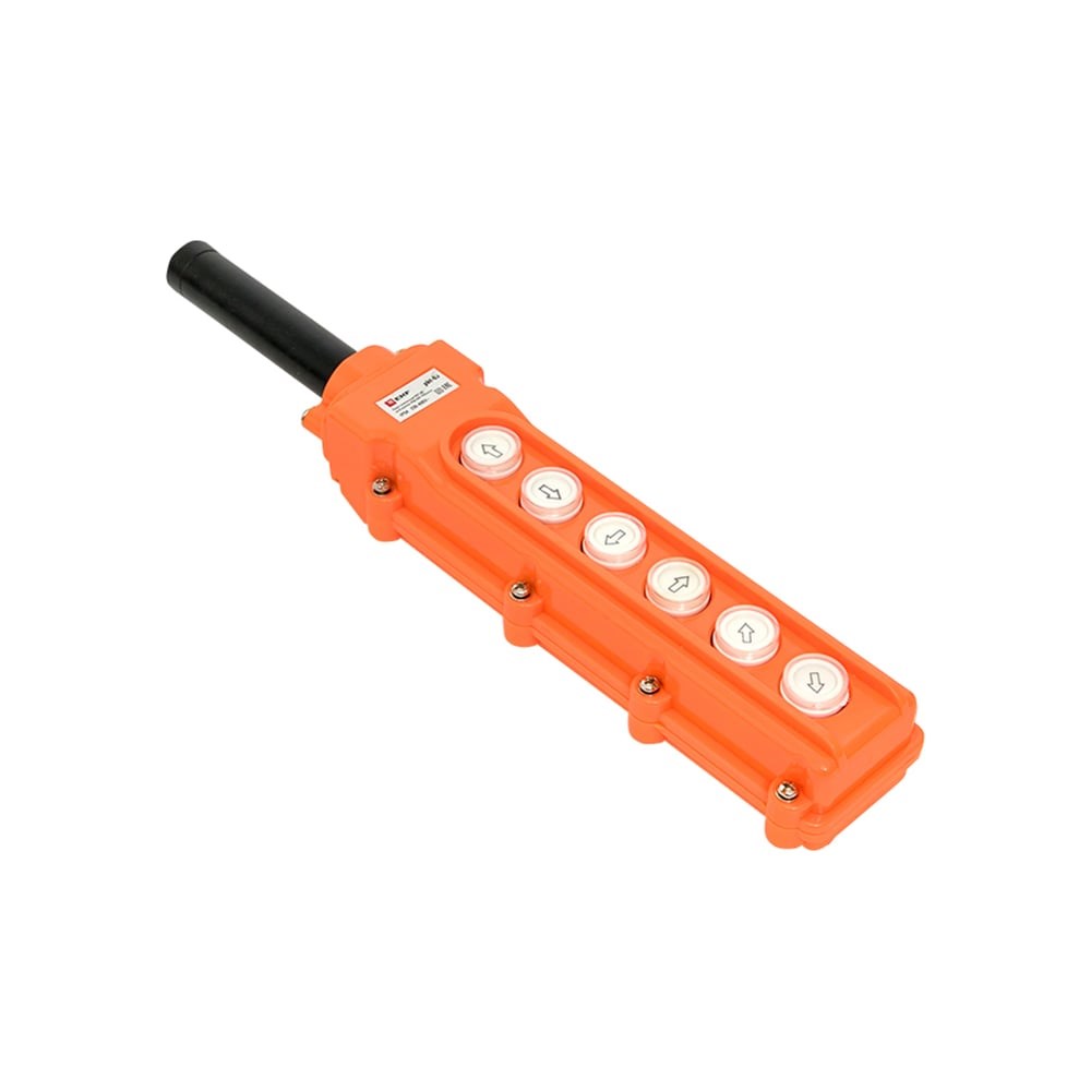 Пульт кнопочный ПКТ IP54 EKF PROxima представляет собой коммутационное устройство с возвратными кнопками и герметичным корпусом из термостойкой ABS-пластмассы. Для герметизации ввода кабеля предусмотрен защитный сальник, а между корпусом и панелью устанавливается герметизирующая прокладка. Кнопочный пульт выполняет функцию переносного коммутационного устройства и предназначен для управления различными подъемными механизмами и приводами: 1. тельферы 2. опорные краны 3. мостовые краны ДОПОЛНИТЕЛЬНЫЕ ХАРАКТЕРИСТИКИ Тип кнопок- нажимные с возвратом Механическая блокировка кнопок управления Механическая износостойкость – 30 000 циклов Коммутационная износостойкость – 10 000 циклов Сечение подключаемых проводников – 1,5мм2 Степень защиты IP54