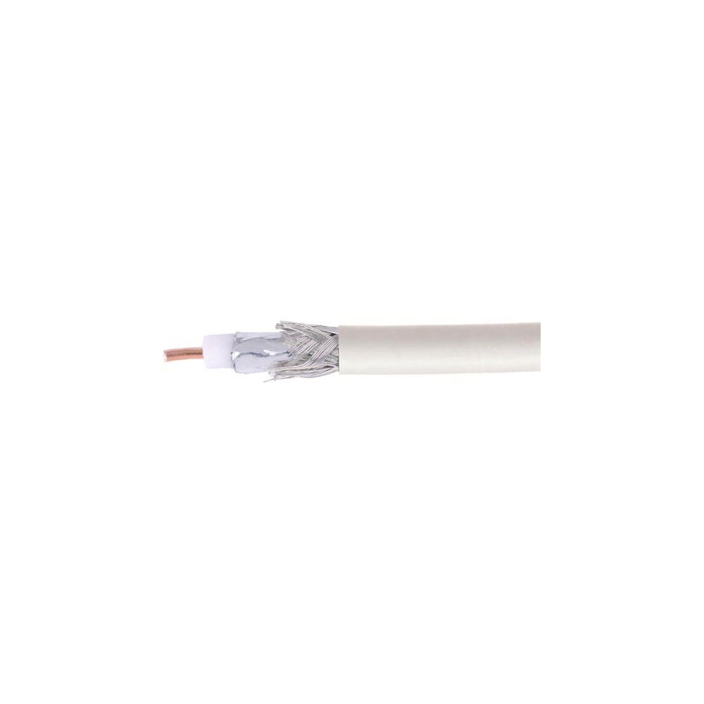 RG-6U-CS-1 - кабель коаксиальный радиочастотный со вспененной полиэтиленовой изоляцией в ПВХ оболочке. Является самым распространенным решением для подключения внутренних и межблочных соединений общепромышленных и бытовых радиотехнических устройств, для подключения систем телевидения, а также для подключения видеокамер наружного и внутреннего наблюдения.Конструкция:Внутренний проводник: стальная проволока, плакированная медью Диаметр внутреннего проводника: 0,8 мм Диаметр по внутреннему диэлектрику: 4,8±0,2 мм Диэлектрик: вспененный полиэтилен Экран в виде сплошной алюминиевой фольги Внешний проводник: из алюминиевой проволоки в виде оплётки Плотность оплетки: 64 % Диаметр проволоки экрана: 0,12-0,15 мм Наружный диаметр: 6,8±0,2 мм Материал оболочки: ПВХ Цвет оболочки: белый Длина: 100 метровТехнические характеристики:Волновое сопротивление: 75±3,0 Ом Сопротивление связи: 200 мОм/м Рабочая температура: от –40 до +60 °С Минимальная температура монтажа: –5 °С