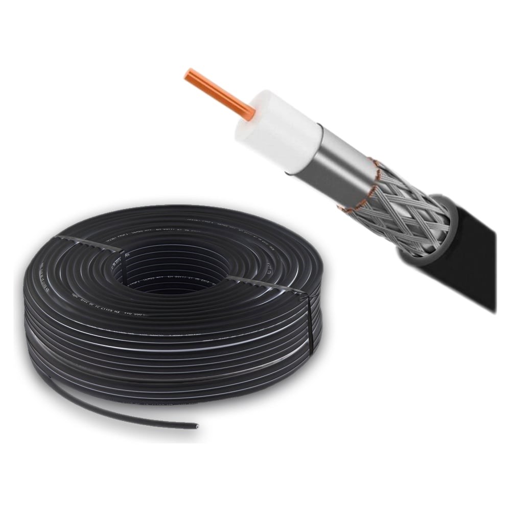 Кабель коаксиальный RG-6U (75 Ом) омедненный применяется для подключения спутниковых и кабельных телевизионных систем, камер видеонаблюдения и устройств, поддерживающих HDTV. Обладает хорошими пропускными показателями и минимальным уровнем потери сигнала. Имеет широкий диапазон рабочих температур. Кабель состоит из омедненной стальной проволоки, находящейся в диэлектрике из вспененного полиэтилена. Поверх диэлектрика наложен экран из алюминиевой фольги, на котором располагается внешний проводник из алюминиевой проволоки в виде оплетки плотностью 48%. Диаметр проволоки в оплетке 0,12-0,15 мм.