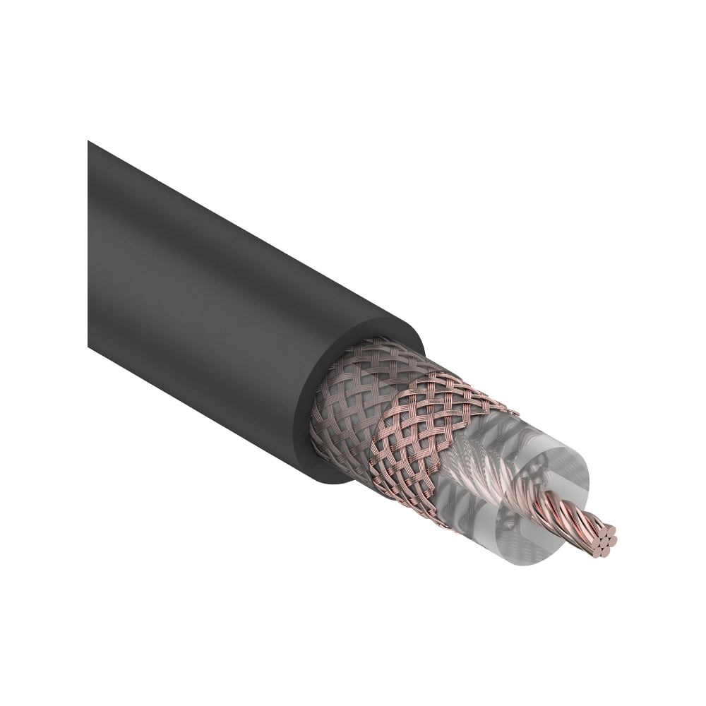Кабель применяется внутри помещений для передачи магистральных высокочастотных сигналов в радио - и телесистемах. По структуре состоит из многожильного центрального проводника, изготовленного из меди и окруженного изоляцией из вспененного полиэтилена. Многожильный проводник делает кабель более гибким, что является удобным при его прокладке. Экран (внешний проводник) сплошной, изготовлен в виде медной оплетки плотностью 96%, улучшающая защиту от электромагнитных помех. Внешняя оболочка из ПВХ является сплошной, имеет черный цвет. При производстве кабеля используются только высококачественные материалы, что обеспечивает стабильность работы, высокую пропускную способность и долгий срок службы.