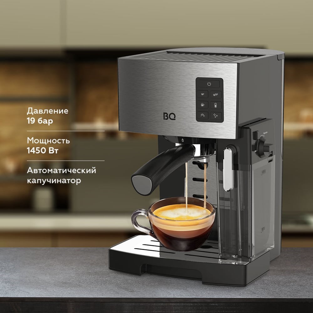 Кофеварка BQ CM9002 совмещает в себе комфорт использования, функциональность и элегантный дизайн. Устройство поддерживает приготовление эспрессо, латте и капучино, что делает его идеальным решением для любителей ароматного и насыщенного кофе. Сочетание в кофеварке мощности 1450 Вт и помпы Defond, создающей давление 19 Бар, обеспечит полную передачу кофейного вкуса и аромата, а автоматический капучинатор и программирование объема кофе, молока и количества пены сделают эксплуатацию прибора ещё более комфортной. Съемный контейнер для воды имеет объем 1.4 л, для молока - 0.39 л. Оба контейнера имеют градуировку. Кофеварка оснащена режимом самоочистки, который значительно упростит уход за прибором. Кроме того, устройство снабжено дополнительной откидной подставкой для маленьких чашек, съемным резервуаром для капель и прорезиненными ножками, препятствующими скольжению. Корпус кофеварки изготовлен из нержавеющей стали и выполнен в эффектном и элегантном дизайне. Немаловажным преимуществом устройства является наличие защиты от перегрева и функции автоматического отключения, которые обеспечат безопасность эксплуатации и долговечность прибора. В комплектацию входят 2 фильтра из нержавеющей стали (на 1 и 2 чашки кофе) и мерная ложка. Наслаждайтесь вкусным кофе каждый день вместе с кофеваркой BQ CM9002!